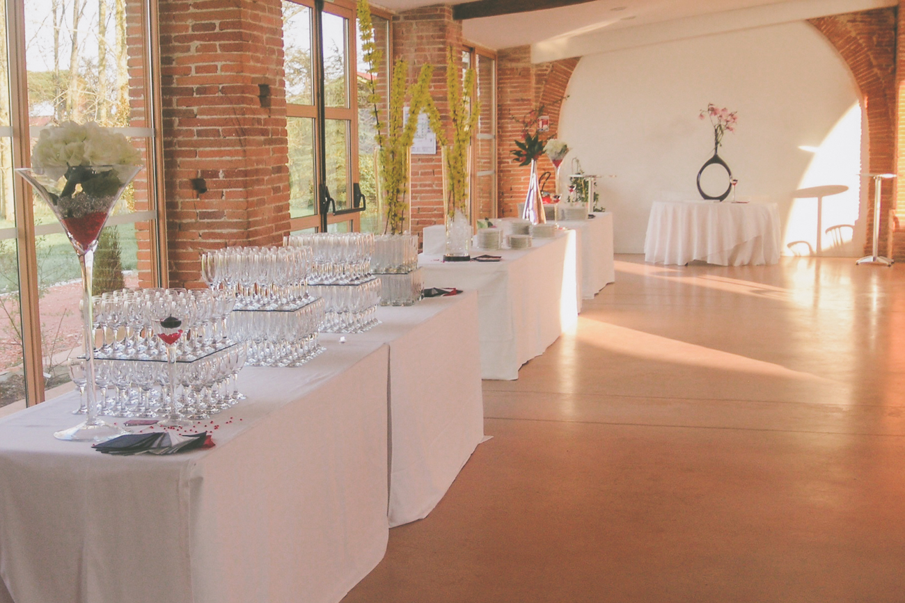 Vaste bâtiment en briques modulable pour vos espaces cocktail, cérémonie laïque, vos photos souvenirs, soirée dansante et repas d’une capacité de 300 places assises.